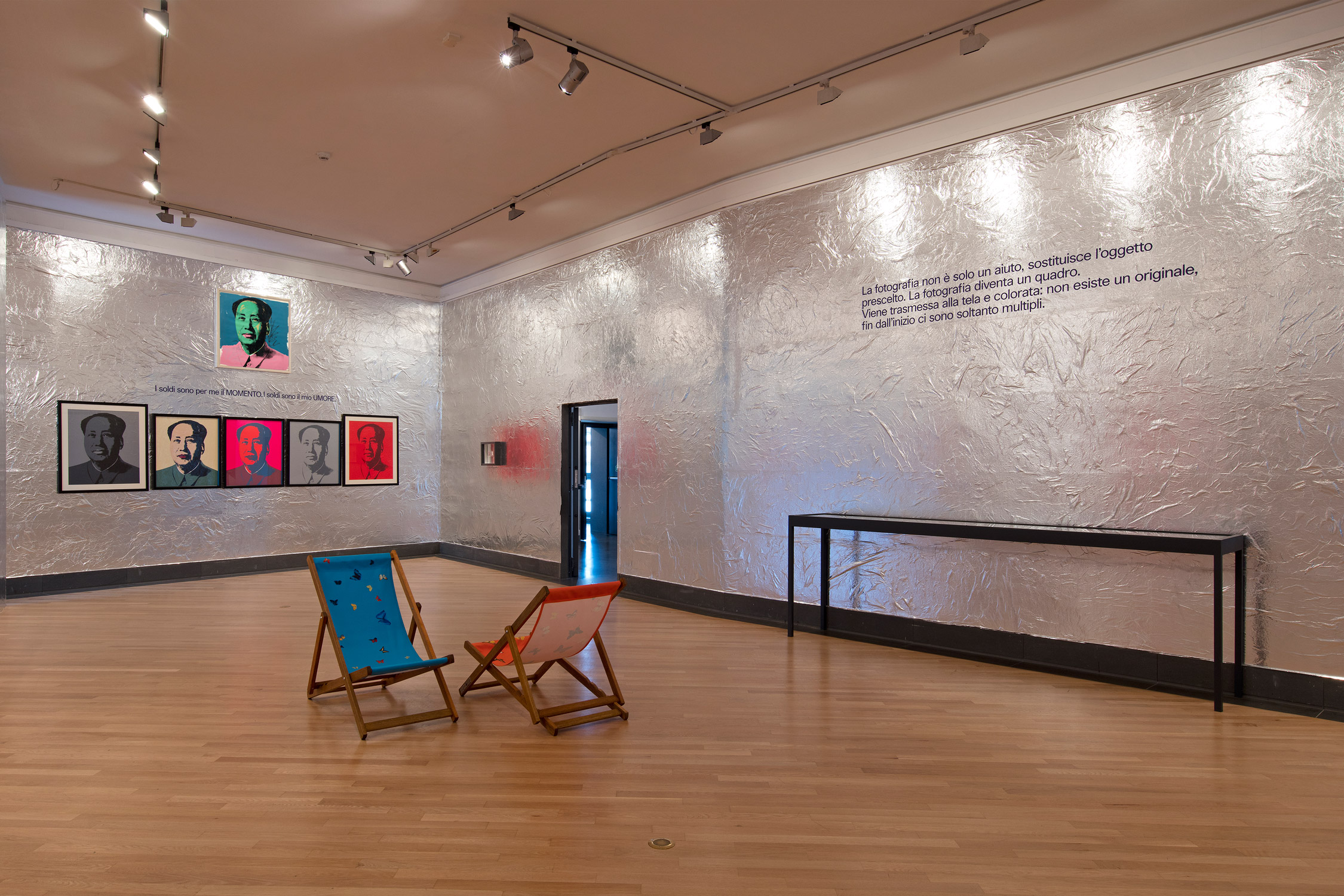 I visitatori saranno guidati lungo il percorso da celebri citazioni di Warhol, e potranno utilizzare le “opere moltiplicate” di un grande autore contemporaneo debitore della sua arte: Damien Hirst. Nelle sale della mostra, infatti, saranno presenti le sedie sdraio del marchio Other Criteria, ideate da Hirst – su cui ci si potrà sedere per ammirare le opere esposte–, a ulteriore dimostrazione di quanto, anche oggi, l’arte si avvalgadel concetto di riproduzione e di “opera moltiplicata”.