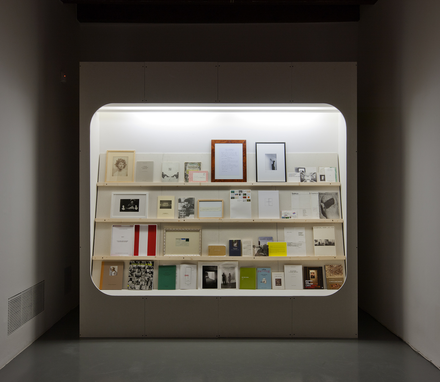 Display for Massimo Minini è uno dei più recenti lavori realizzati dell’artista: mai esposta in Italia, l’opera presenta un carattere di riflessione retrospettiva attraverso l’allestimento di tutti gli inviti prodotti in quarant’anni di attività dalla Galleria Massimo Minini di Brescia, che attualmente rappresenta l’artista in Italia. In questo modo Maljković non rende soltanto omaggio a un protagonista estremamente significativo della storia dell’arte contemporanea in Italia, ma crea un cortocircuito tra la storia passata di una galleria privata e il presente della sua mostra personale al museo, tra lo spazio pubblico dell’istituzione e lo spazio privato della galleria, tra la memoria individuale e la sua trasmissione nella sfera sociale.