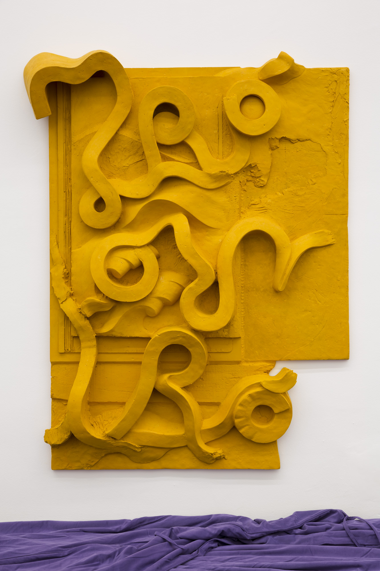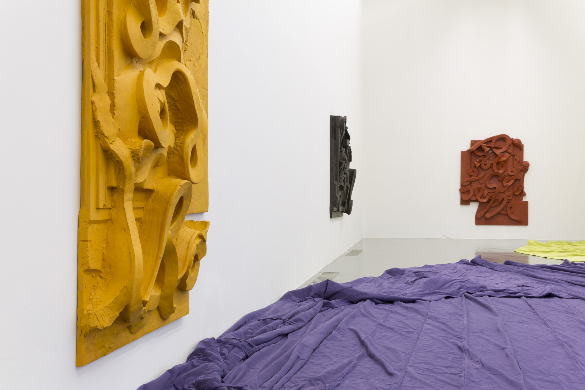 Per la sua mostra alla GAMeC l’artista ha sviluppato una serie di lavori inediti all’interno di un percorso espositivo pensato in relazione allo Spazio Zero del museo. Tre grandi opere a parete costituiscono l’ossatura della mostra e sono il risultato di un processo compositivo e scultoreo nato a partire dall’elaborazione visiva di parole e brevi frasi. Di ciascuno di questi piani estremamente elaborati è stato poi realizzato un calco in resina plastica, un materiale in grado di registrare le minime variazioni della materia ma che, al tempo stesso, raffredda e allontana la percezione del lavoro manuale. Questi tre monumentali alto-rilievi creano quindi una serie di oscillazioni e di ambiguità percettive tra scultura, pittura e linguaggio.