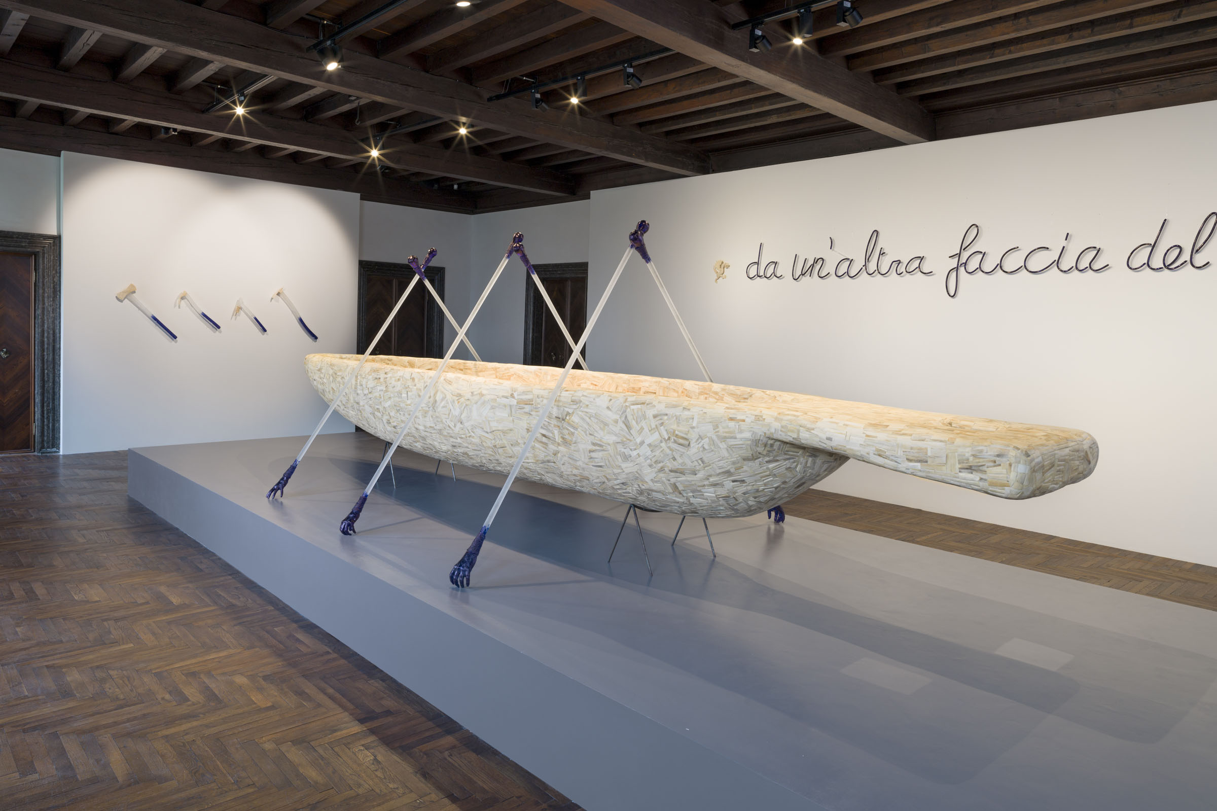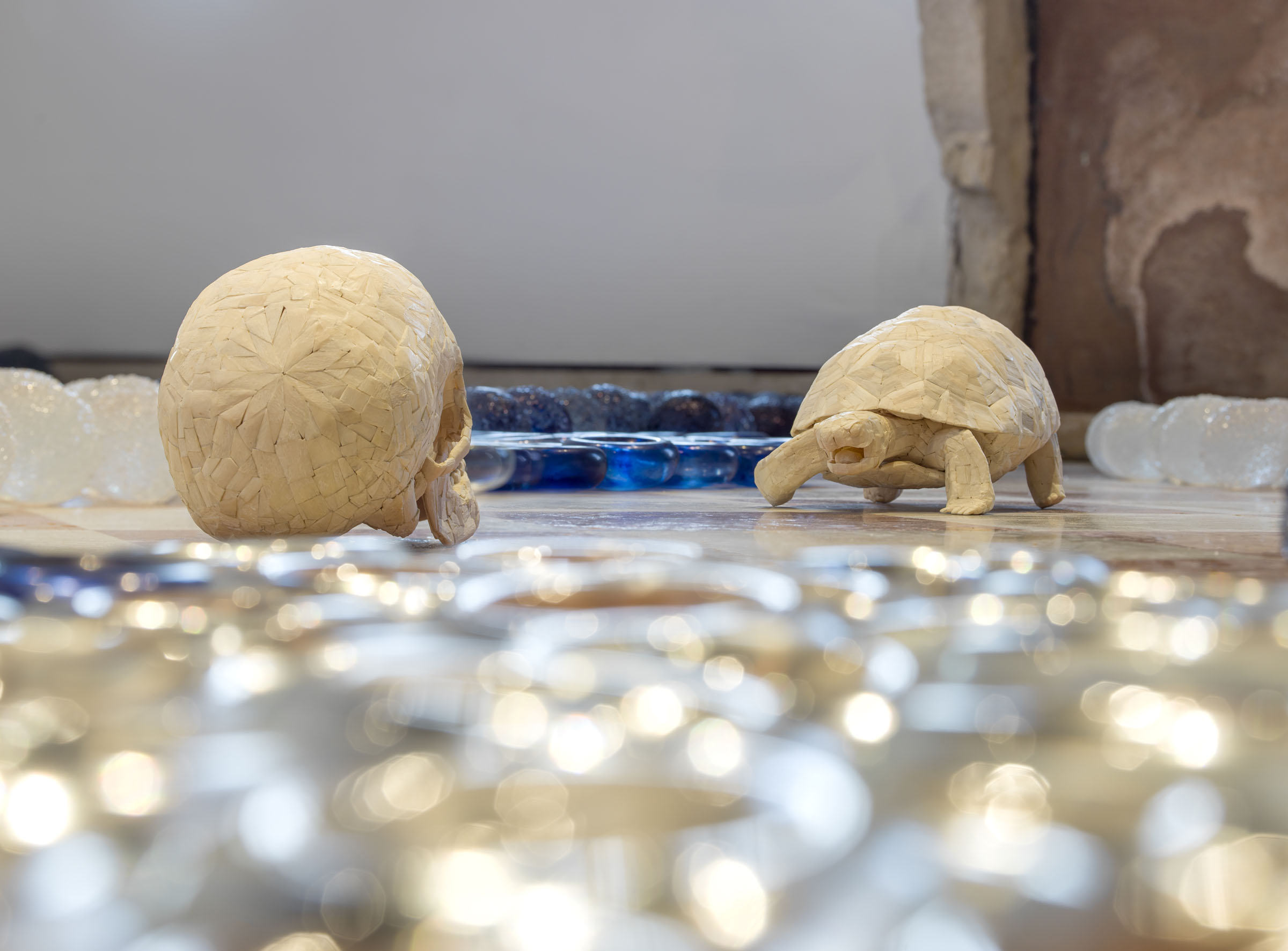La mostra presenta, per la prima volta insieme, oltre 40 opere in vetro e ossa, realizzate dall’artista belga in un quarantennio di lavoro, tra il 1977 e il 2017, che innescano una riflessione filosofica, spirituale e politica sulla vita e la morte attraverso la centralità della metamorfosi.