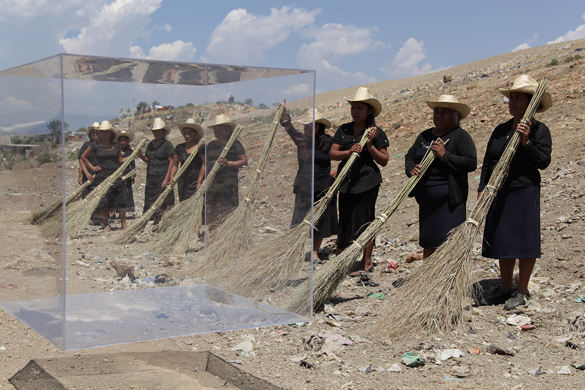 Il nome stesso del collettivo, che significa “miraggio”, contiene il termine “espejo” (specchio), materiale utilizzato per la creazione di una serie di caleidoscopi tridimensionali che ci offre una rara visione delle simmetrie dello spazio che abitiamo, stimolando al contempo un inedito confronto con il lavoro di Giacomo Balla: in un contesto globale soggetto a costanti fratture e interconnessioni, il caleidoscopio diventa infatti una metafora e uno strumento per articolare cambiamenti accidentali di prospettiva e riconfigurare il nostro senso di confine.