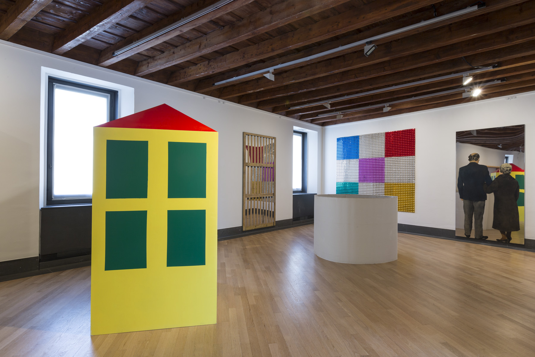 I Quadri specchianti sono messi in relazione, lungo il percorso, con la serie Oggetti in meno, considerata tra le più importanti e decisive per la cultura visiva contemporanea: oggetti scultorei creati a metà degli anni Sessanta che traggono ispirazione da campi diversi quali l’artigianato, l’architettura, il design e la cultura popolare; reinterpretazioni di oggetti di uso quotidiano, “nature morte” a scala ambientale, che rappresentano un’azione discorsiva critica in risposta alla società dei consumi e in modo particolare alla Pop Art.