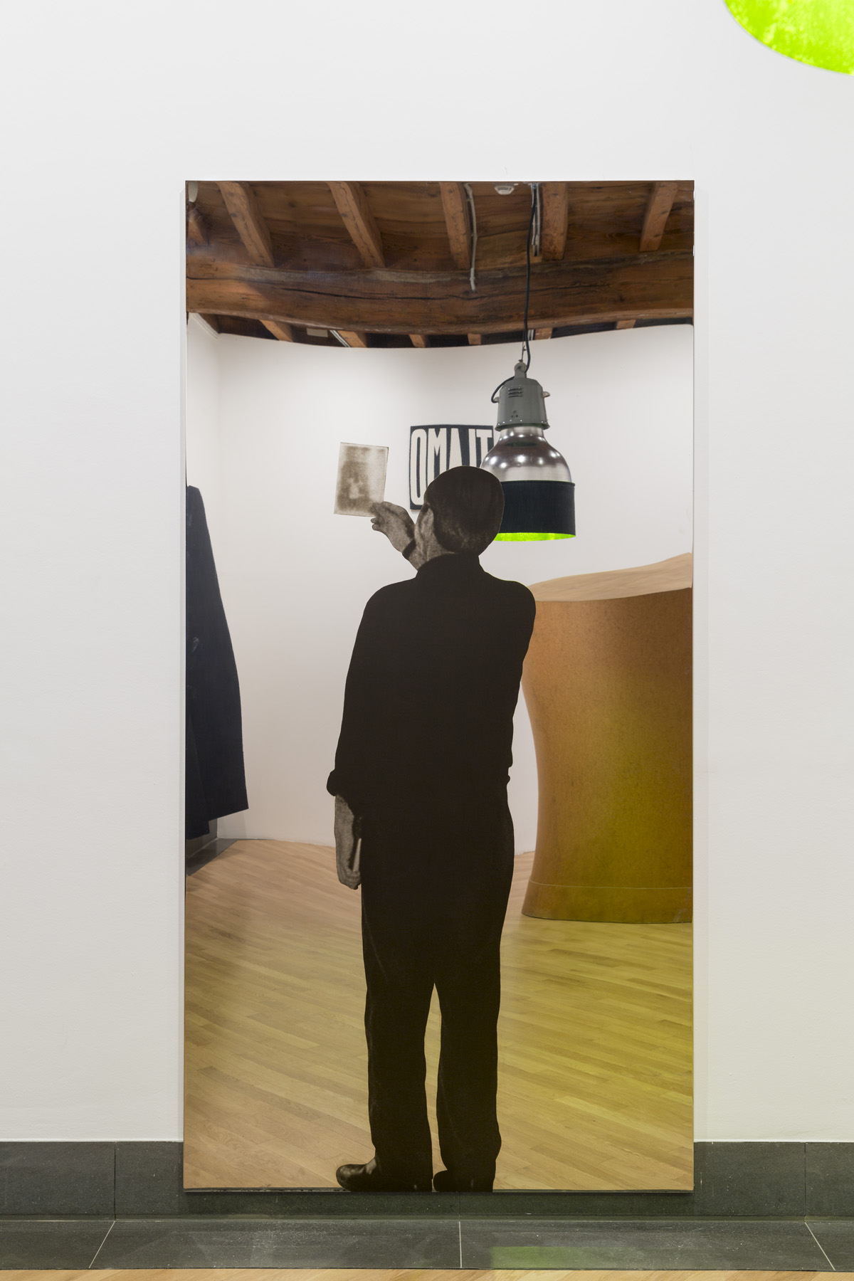 Le grandi lastre di acciaio lucidato a specchio su cui sono applicate serigrafie di persone, animali, e oggetti d’uso quotidiano, si “attivano” grazie a chi le osserva: entrando nel loro campo di riflessione, infatti, la presenza dello spettatore aggiunge nuove immagini al lavoro dell’artista, rendendola un’opera “partecipata”, che acquista senso attraverso l’interazione. Inoltre, la collocazione delle opere direttamente a contatto con il pavimento fa sì che esse aprano un varco attraverso il quale l’ambiente in cui sono esposte si prolunga nello spazio virtuale dell’opera, mettendo in relazione arte e vita.