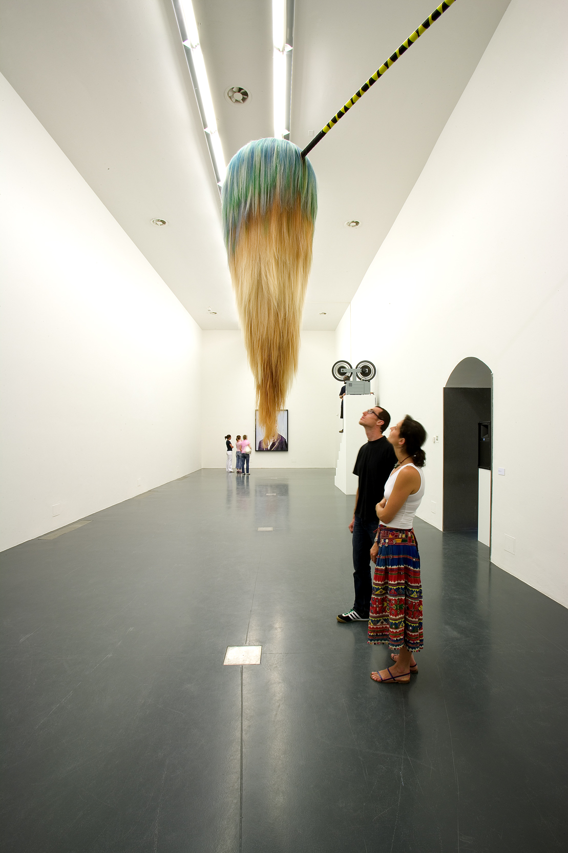 Il negativo di quel fotogramma balza indietro al posto del pallone aerostatico, contaminando a ritroso tutta la pellicola e l’intera mostra che, in questo modo, si configura come un “fuori campo” di ripresa. Quella che è un’anomalia del montaggio cinematografico e, quindi, dello sviluppo del racconto, genera una sovrapposizione di movimento, arresto e caduta che si riverbera su tutte le opere in mostra.