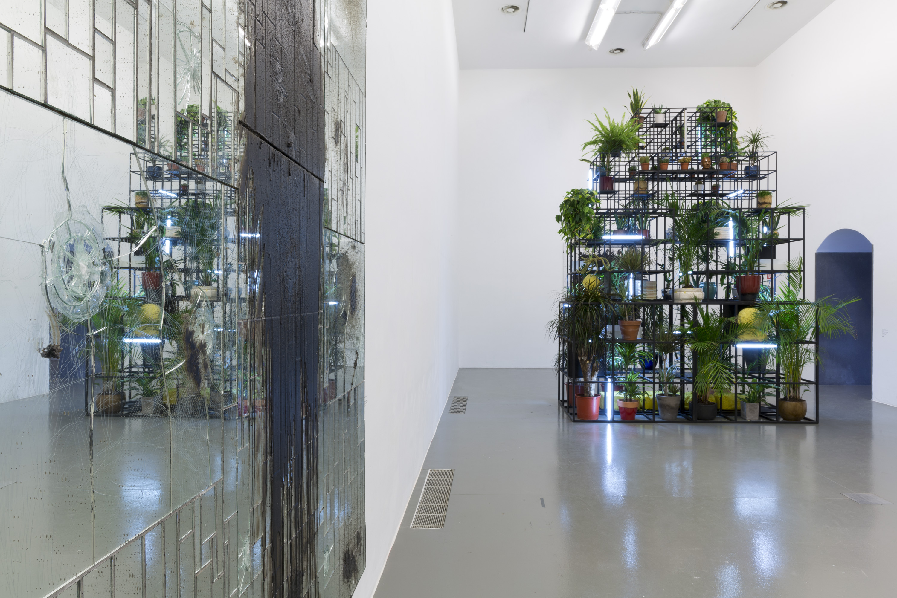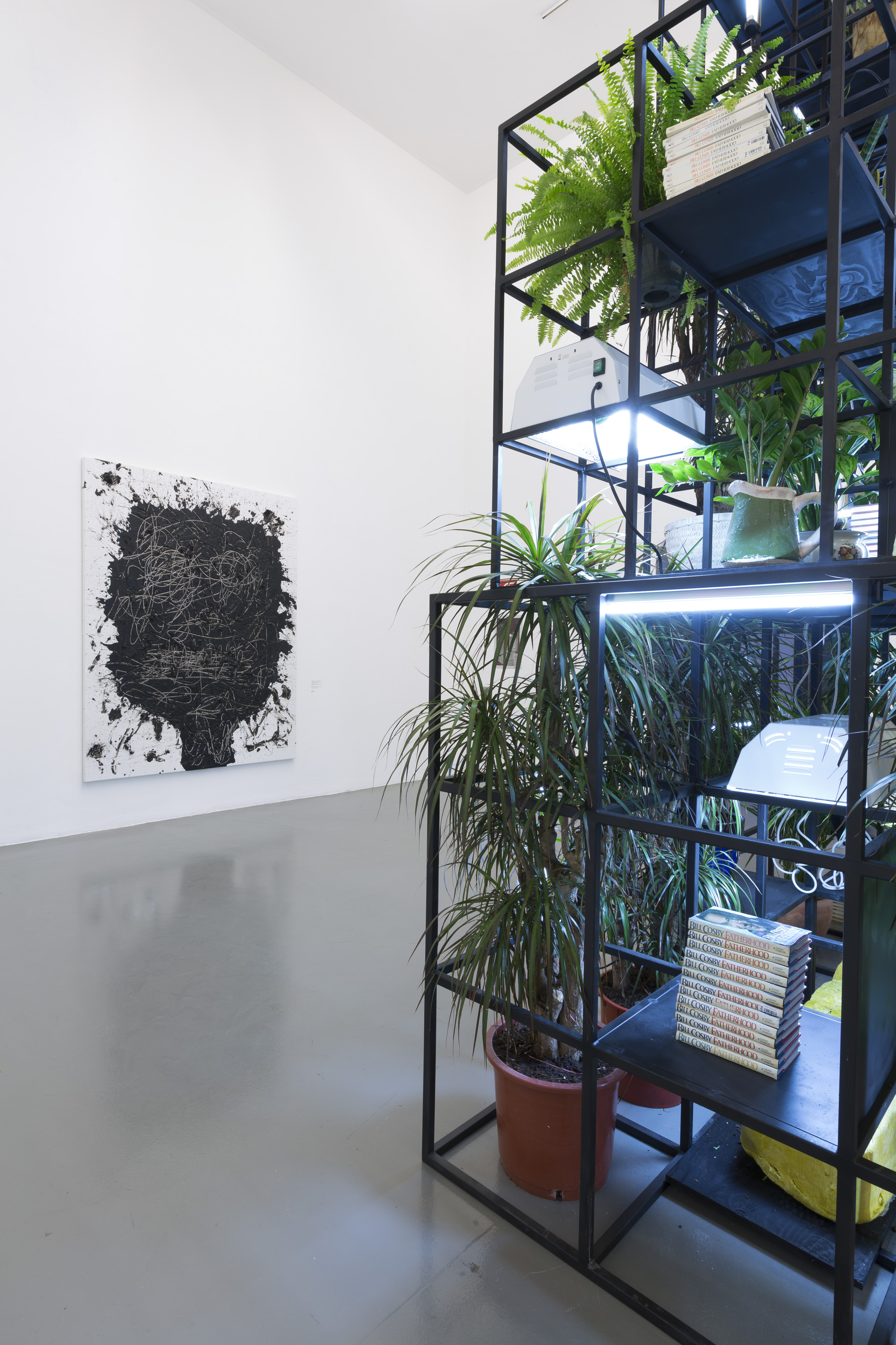I media e i materiali eterogenei presentati in mostra sono divenuti una firma dell’artista e una porta d’accesso al suo mondo: sculture, dipinti, installazioni e video in cui ricorrono elementi caratteristici quali il sapone nero, la cera, le piastrelle in ceramica, la carta da parati, gli spray smaltati e ancora libri, vinili, gusci d’ostrica, burro di karité, ferro, piante.