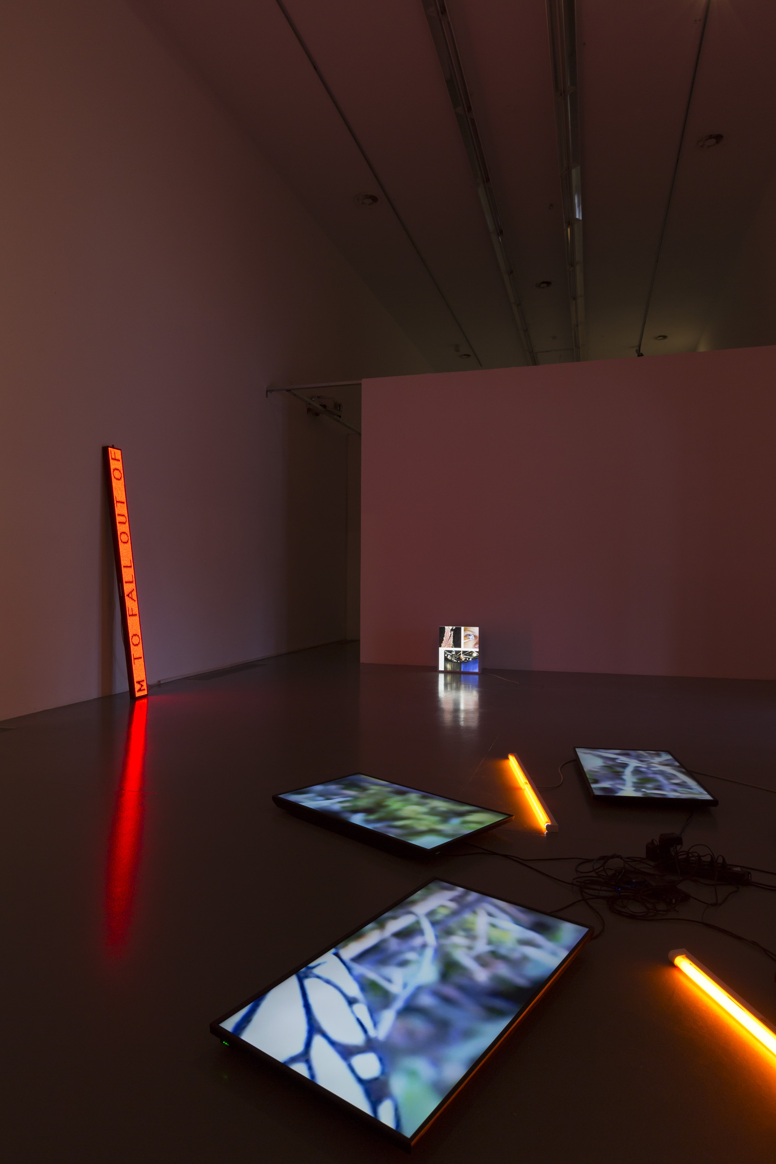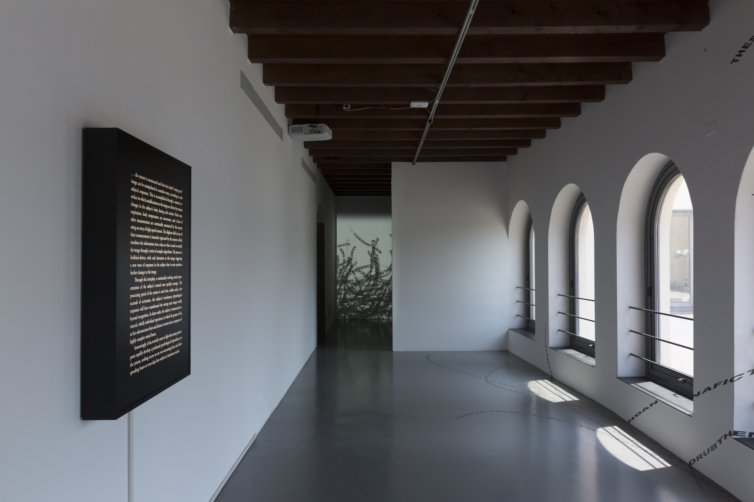 Yin-Ju Chen, Anthony Discenza e Tsang Kin-Wah presentano ciascuno un’installazione multimediale composta da vari elementi, che devono essere viste come tre piccole mostre individuali. Nel complesso, però, queste installazioni formano uno “spazio esperienziale” che crea collegamenti singolari tra le tre diverse postazioni. Mentre l’opera As Above, So Below (2013-14) di Chen specula sulle finzioni dei moderni sistemi di epistemologia ed esplora mezzi alternativi per la produzione di conoscenza, Trouble Sleeping (2015) di Discenza osserva l’assurdità quotidiana delle interazioni tra esseri umani e tecnologia, e The Third Seal – They Are Already Old. They Don’t Need To Exist Anymore (2009) di Tsang indaga le narrative religiose e filosofiche attraverso un linguaggio artistico tecnologicamente molto facilitato.