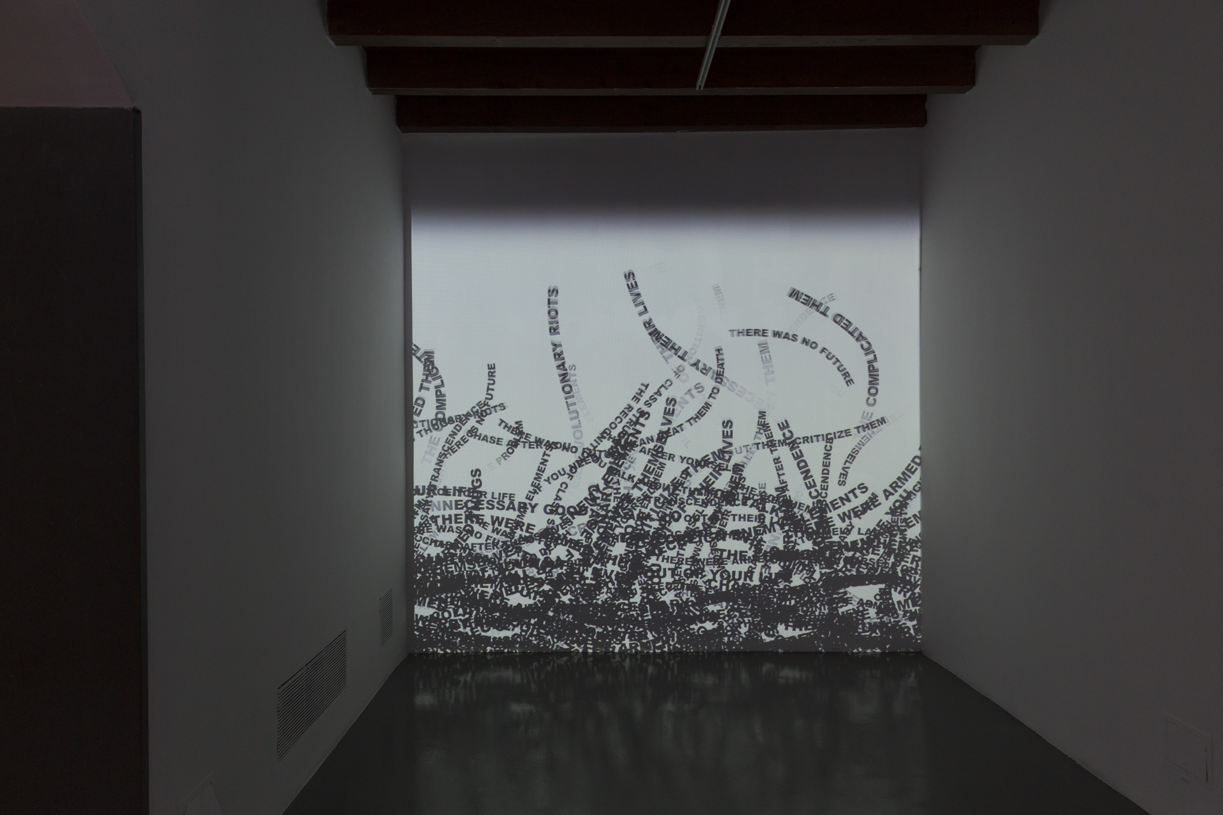 Infine, l’installazione in vinile su vetro Soft Crash (2016) di Tsang – che prende in prestito il titolo della mostra – commenta poeticamente la relazione tra finzione e scienza, tra corpo umano e tecnologie.